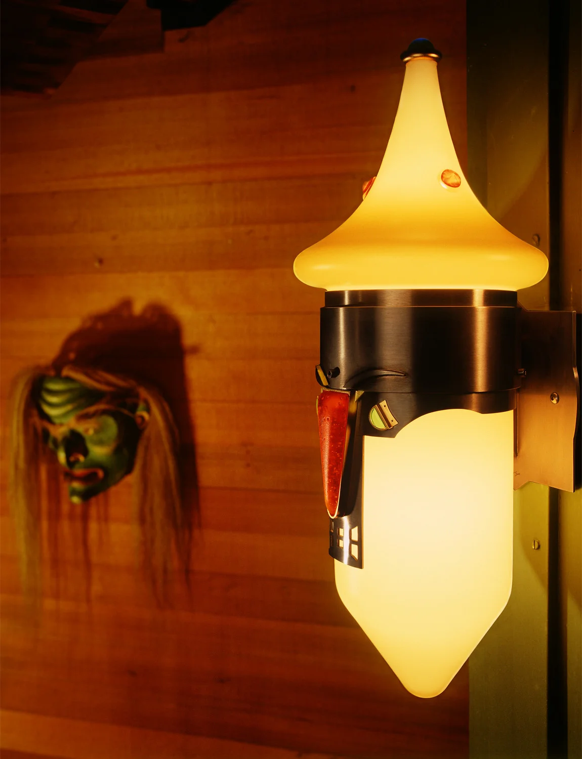 2017. Blown glass, nickel and gold-plated bronze, brass, aluminum, steel, pate de verre and lampworked glass. 53 x 39½ x 17½” Private residence, Westerly, RI