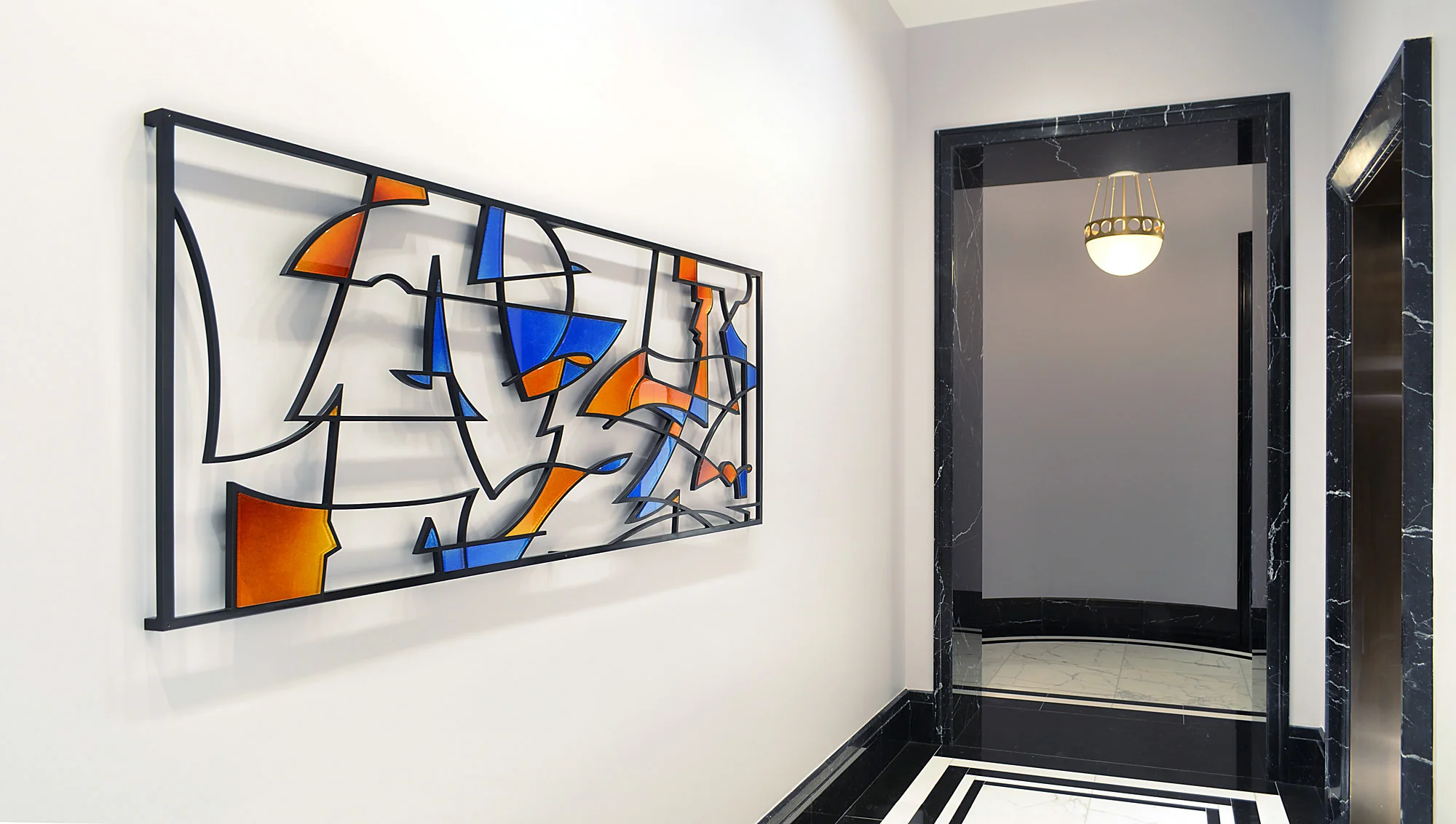 2016. Cast glass, aluminum. 38½ x 85 x 2" Residential tower lobby, New York, NY